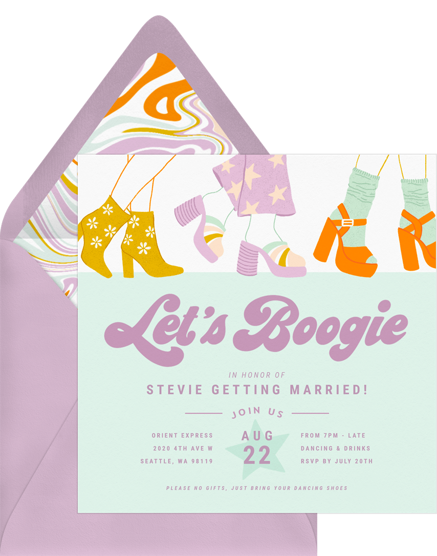 invitations boogie time purple bachelorette party Designs
