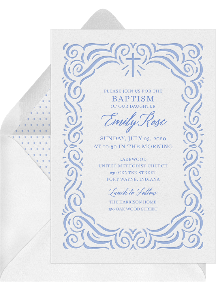 invitations border cross white baptism Designs