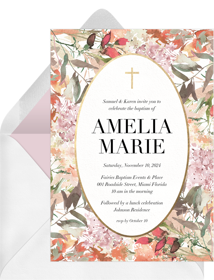 invitations botanical oval creme baptism Designs