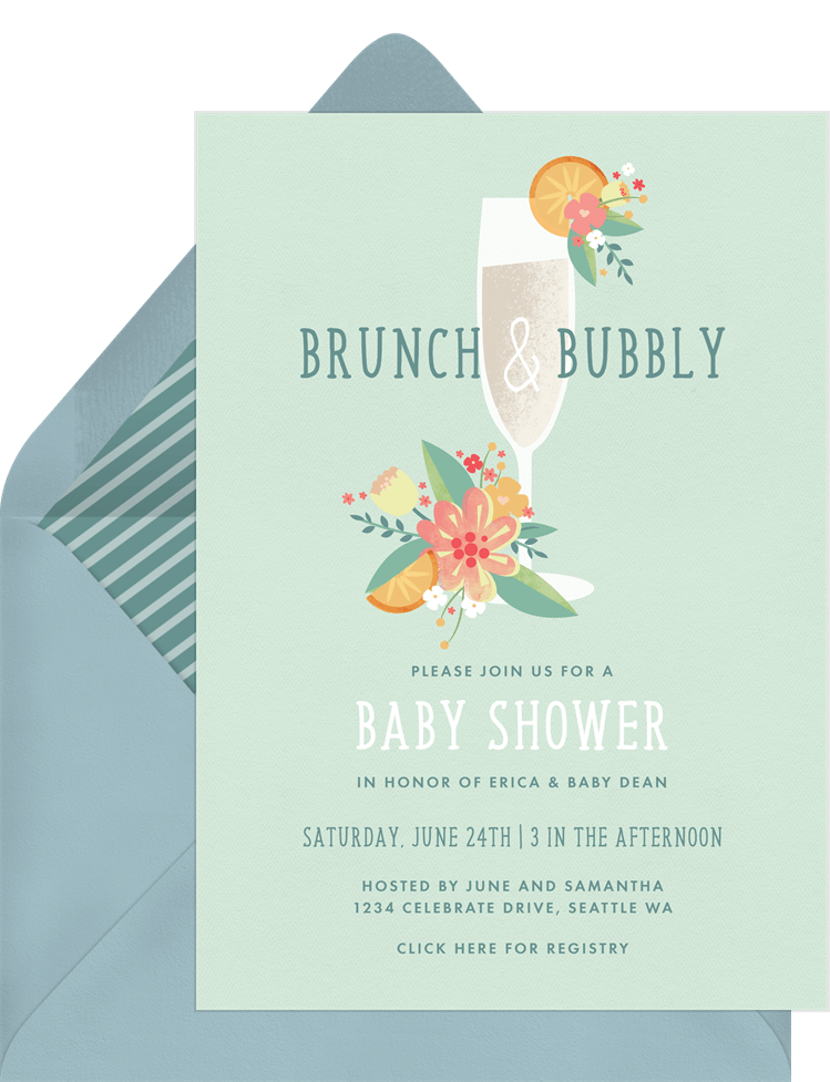invitations brunch and bubbly green baby shower Designs