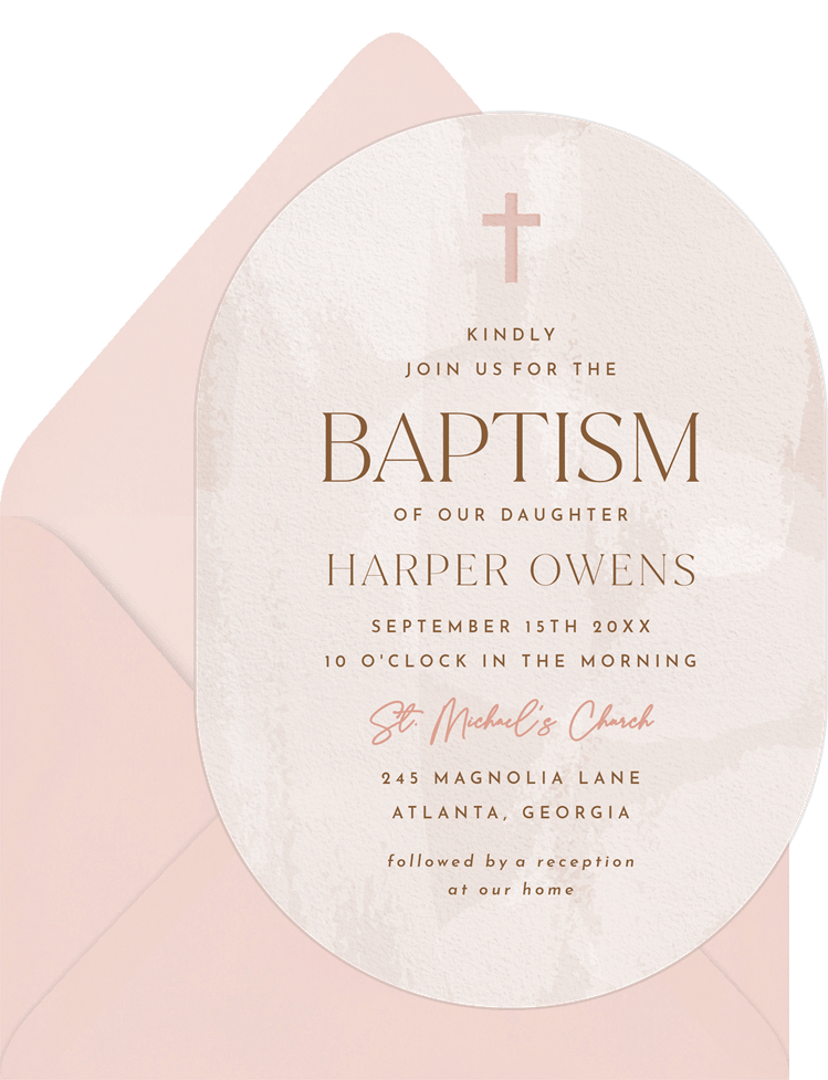 invitations brushed oval pink baptism Designs