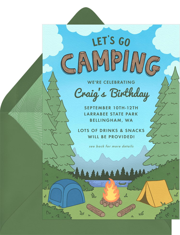 invitations camping adventure green adult birthday Designs