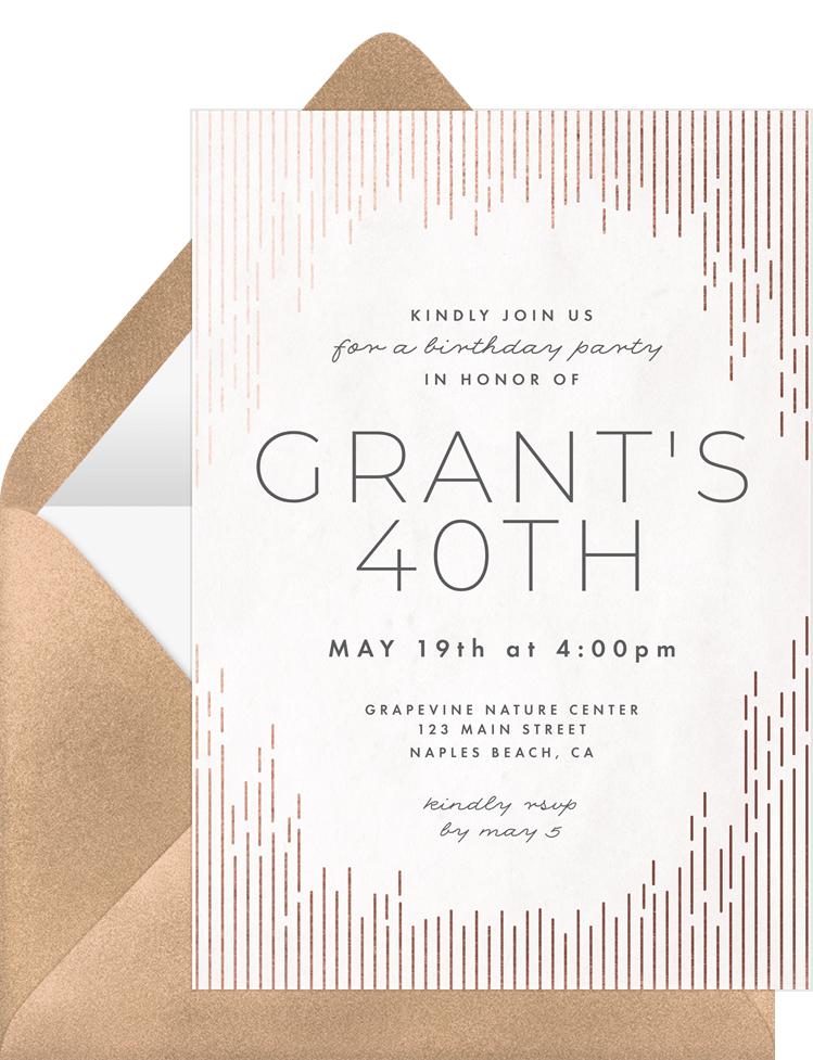 invitations cascading foil white adult birthday Designs