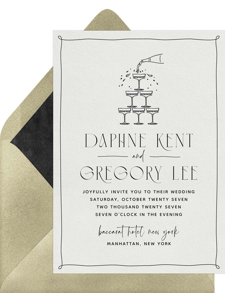 invitations champagne tower cheers white wedding Designs