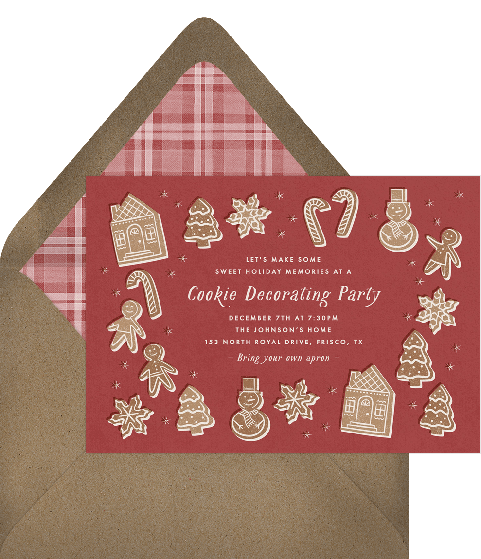 invitations charming gingerbread cookies red christmas party Designs