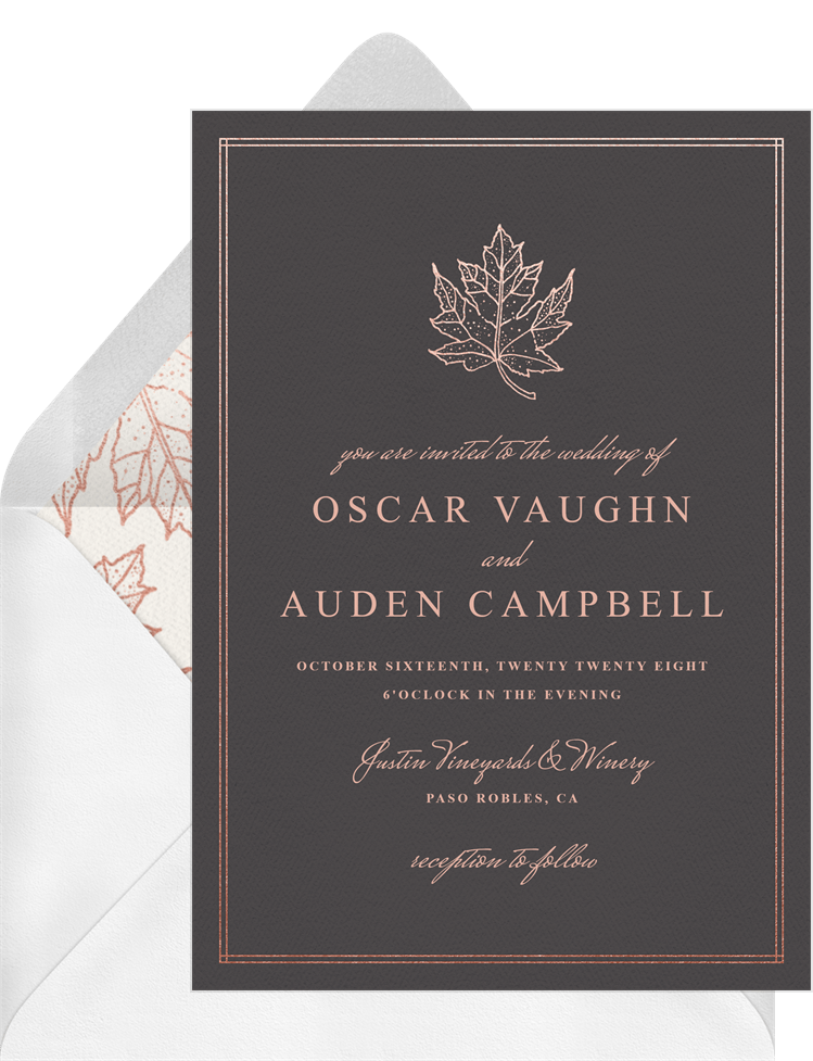 invitations classic maple leaf grey wedding Designs