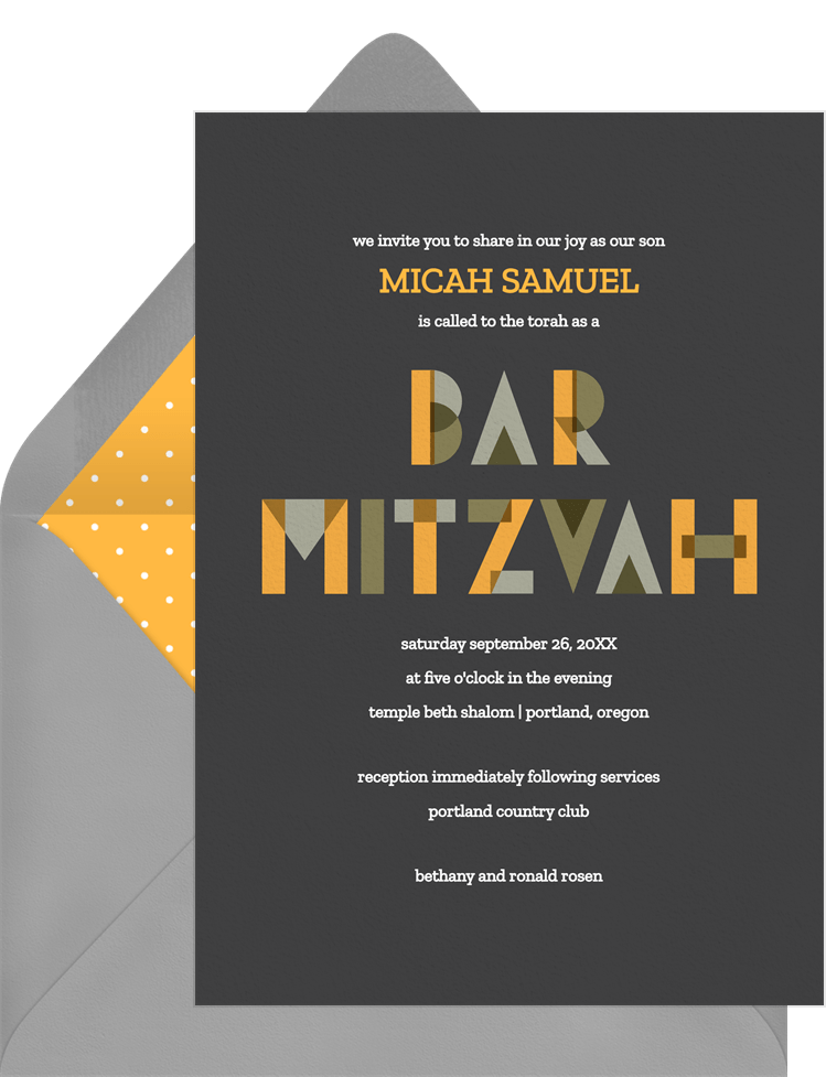 invitations color block bar mitzvah yellow bar mitzvah Designs