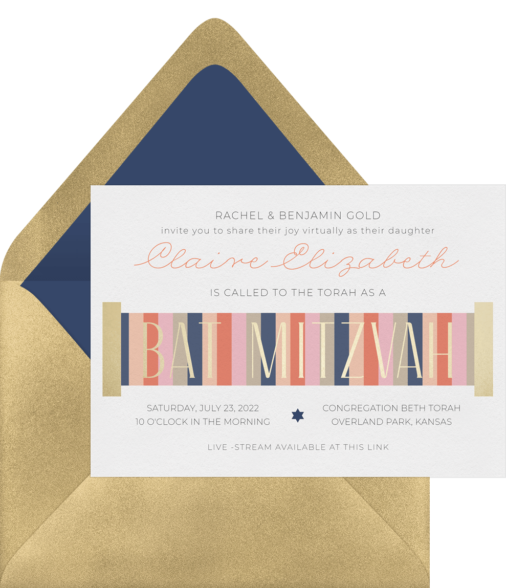 invitations color block scroll pink bat mitzvah Designs