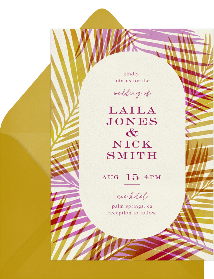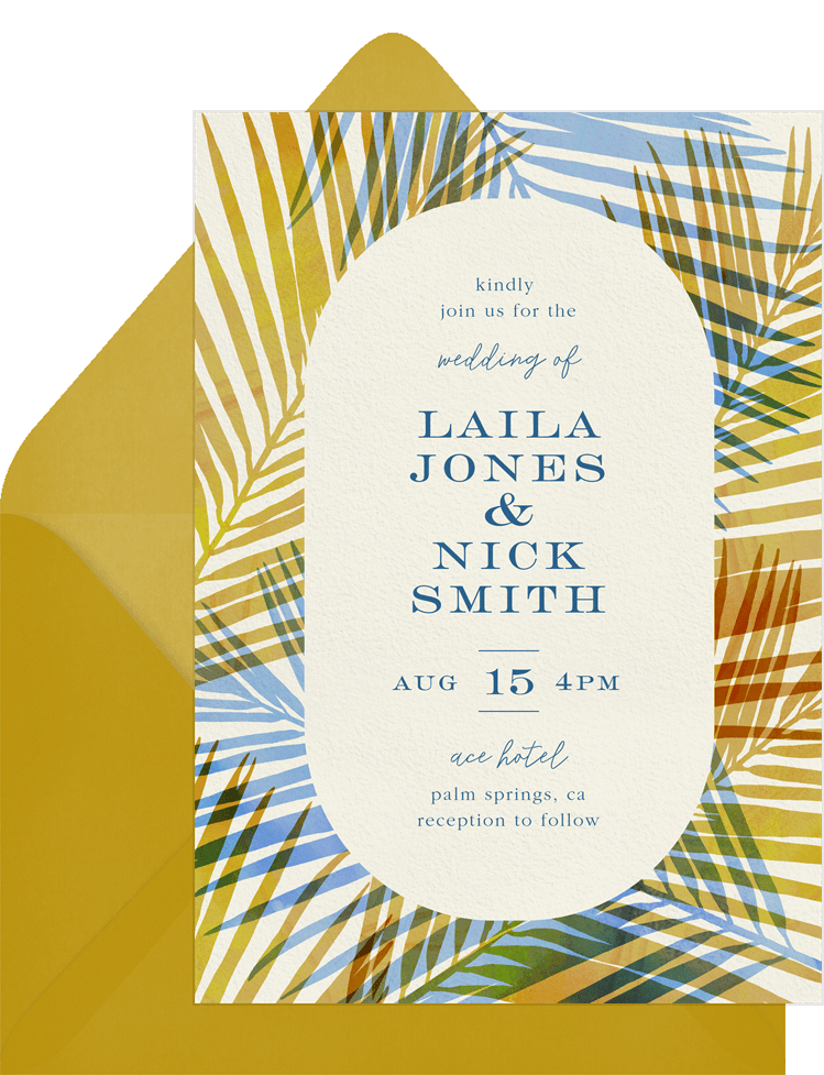 invitations colorful tropical palms yellow wedding Designs