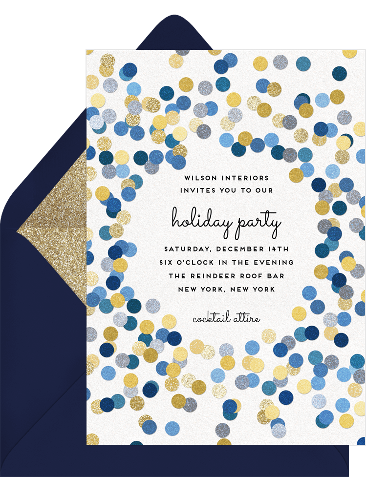 invitations confetti sparkles blue business holiday party Designs