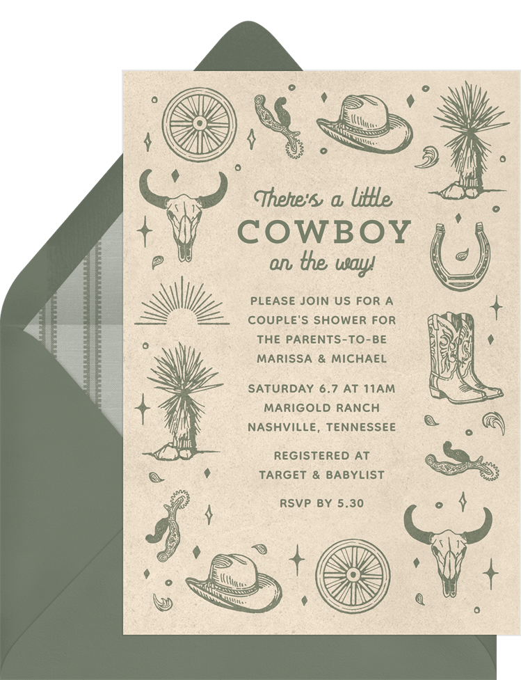 invitations cowboy on the way creme baby shower Designs