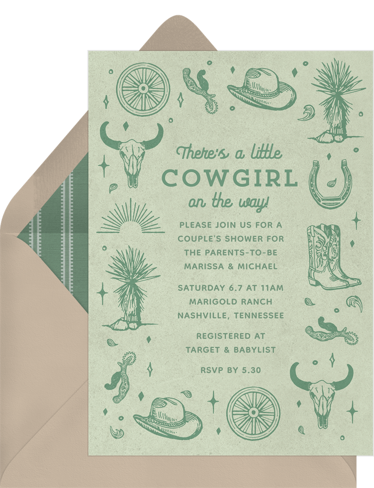 invitations cowgirl on the way green baby shower Designs