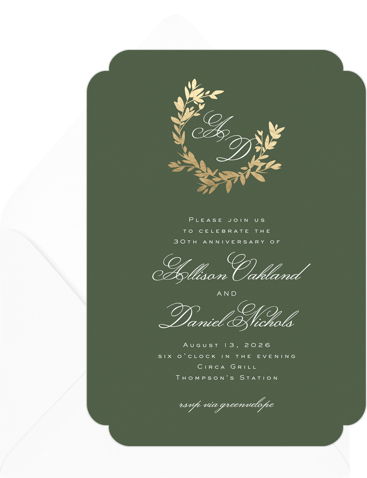invitations crescent wreath green anniversary party Designs