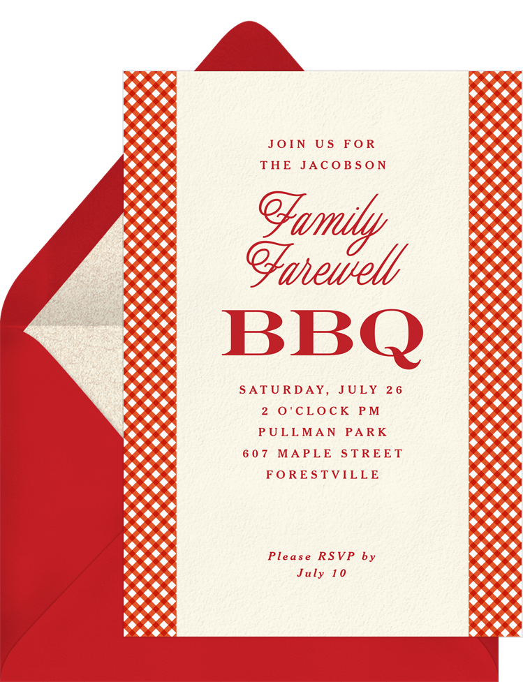 invitations dainty gingham red going away party Designs