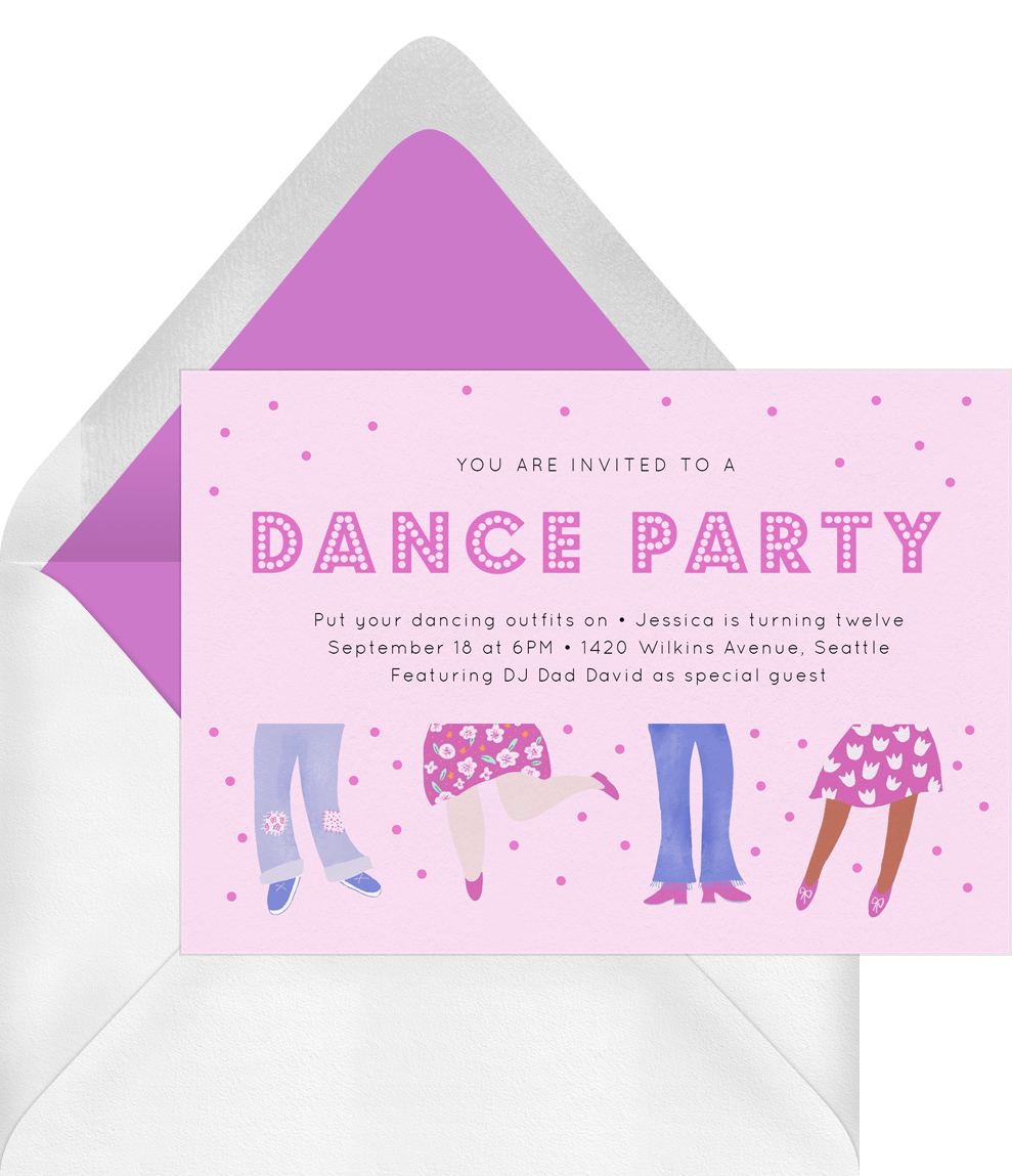 invitations dance party pink kids birthday Designs