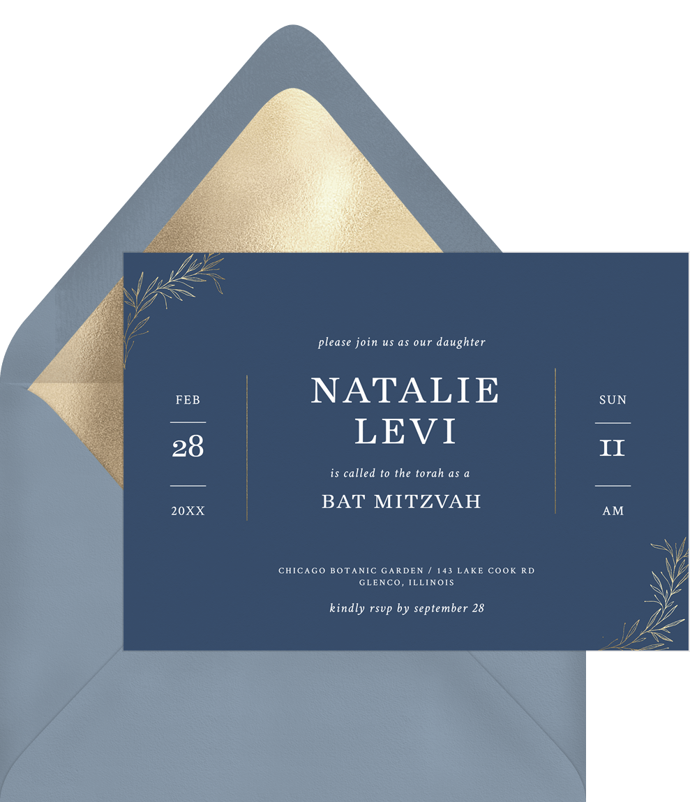 invitations delicate corner sprigs blue bat mitzvah Designs