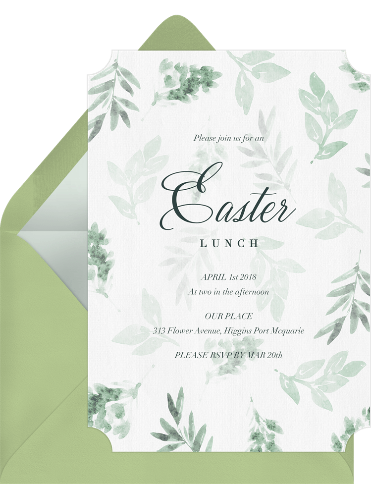 invitations delicate leaves green easter Designs