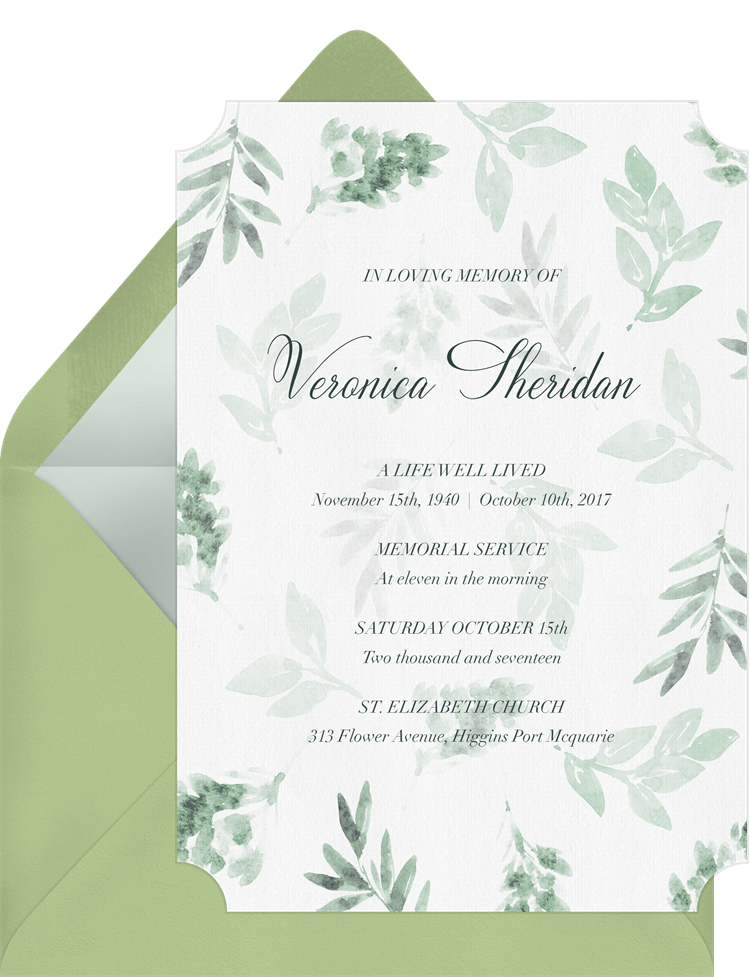 invitations delicate leaves green memorial Designs