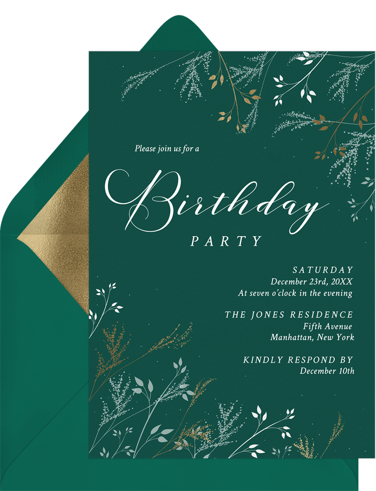 invitations delicate pine boughs green adult birthday Designs
