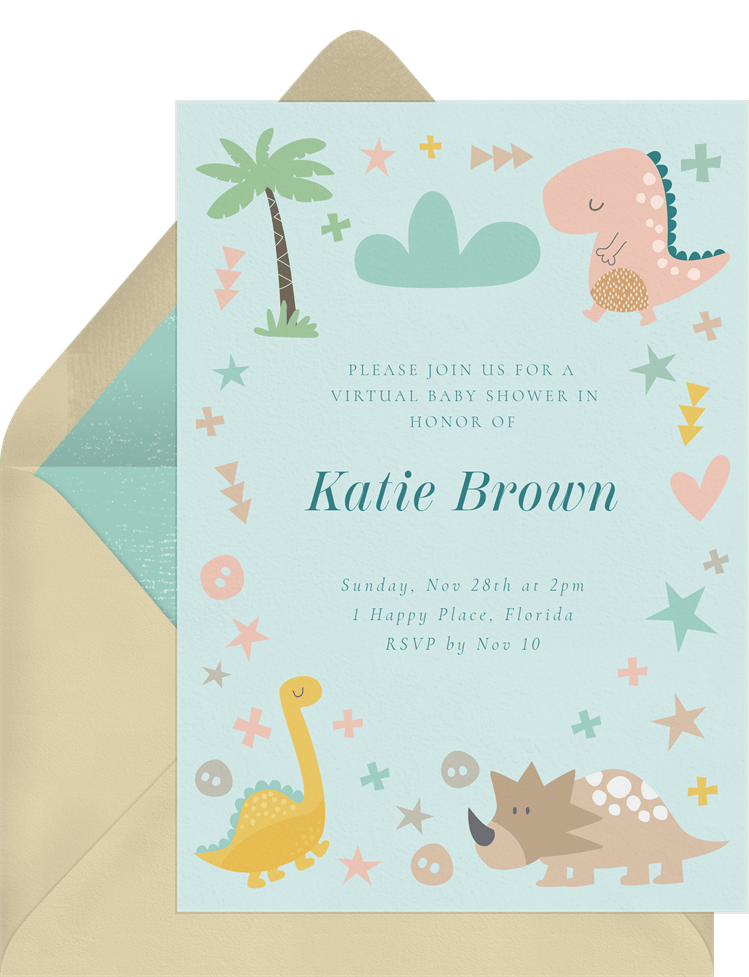 invitations dino garden blue baby shower Designs