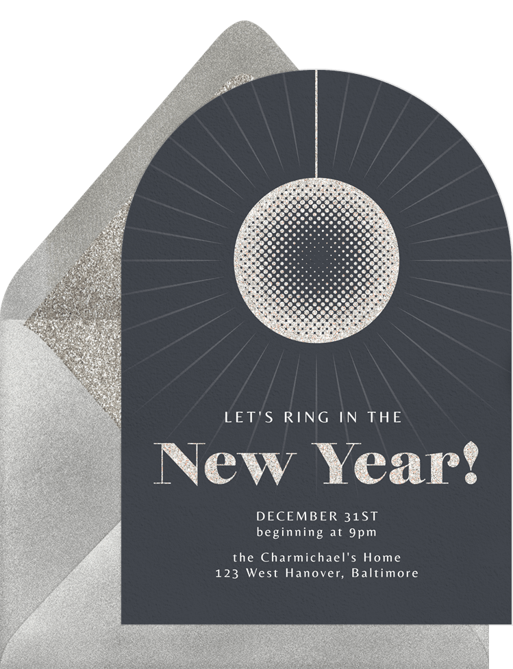 invitations disco ball grey new year's party Designs