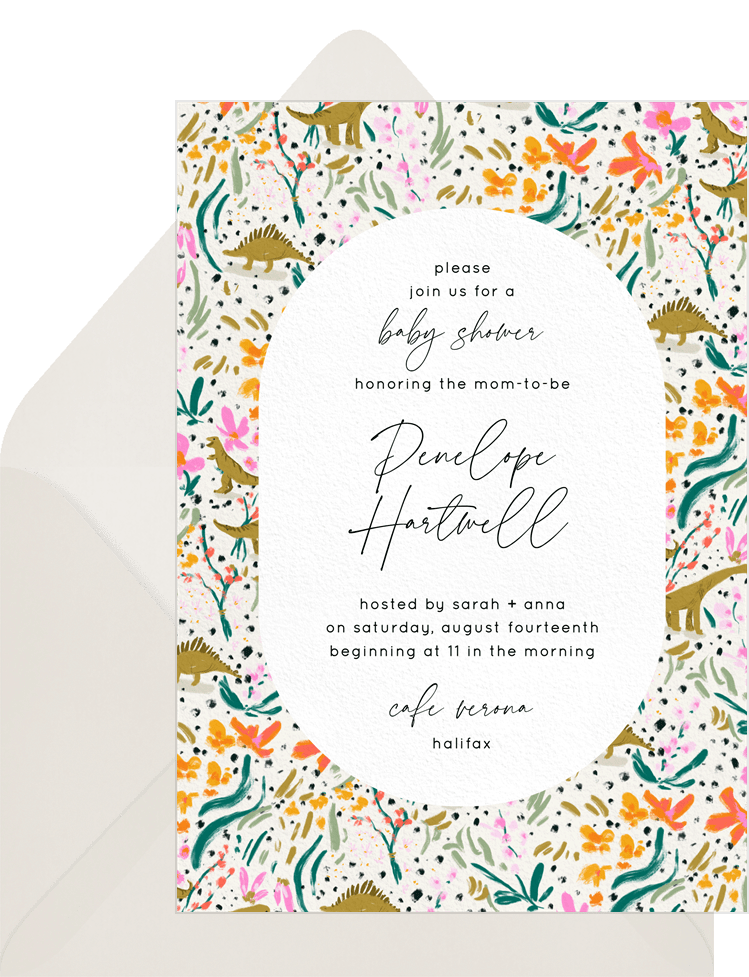 invitations ditsy dino white baby shower Designs
