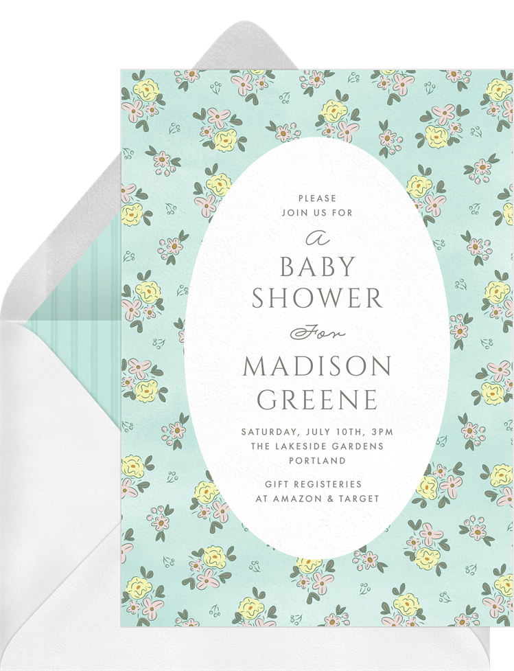 invitations ditsy frame green baby shower Designs