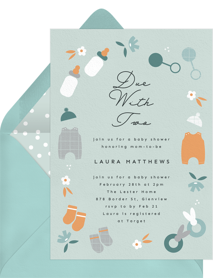 invitations due with two green baby shower Designs