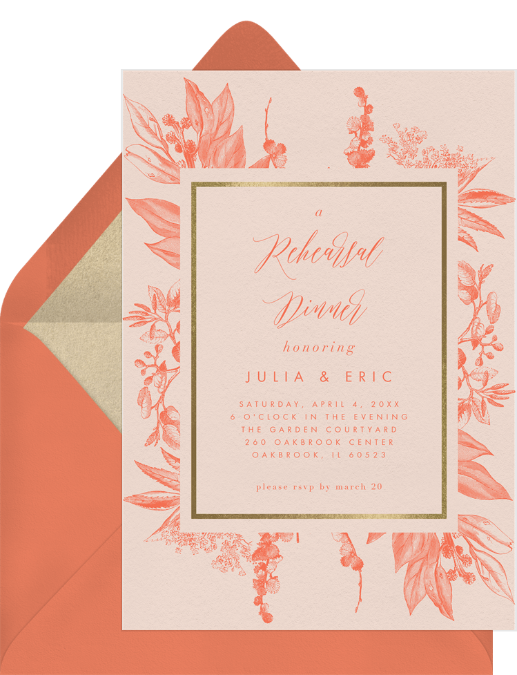 invitations etched vintage botanicals orange rehearsal dinner Designs