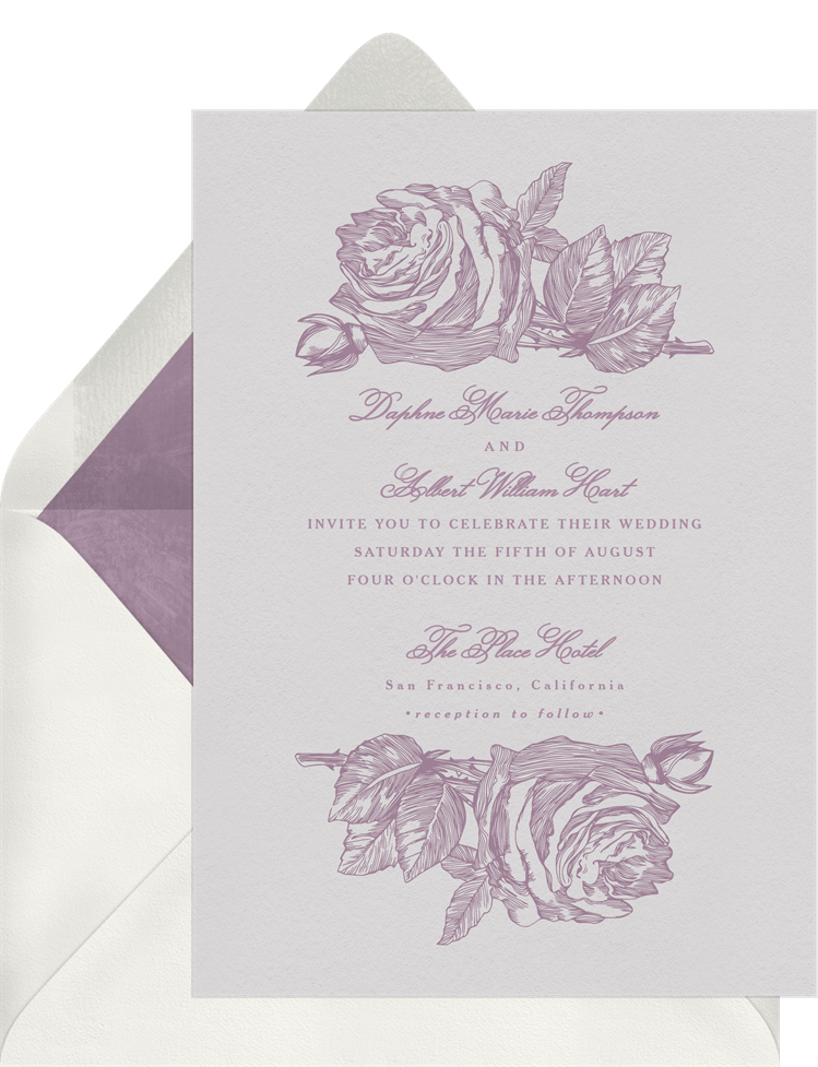 invitations etched vintage rose purple wedding Designs