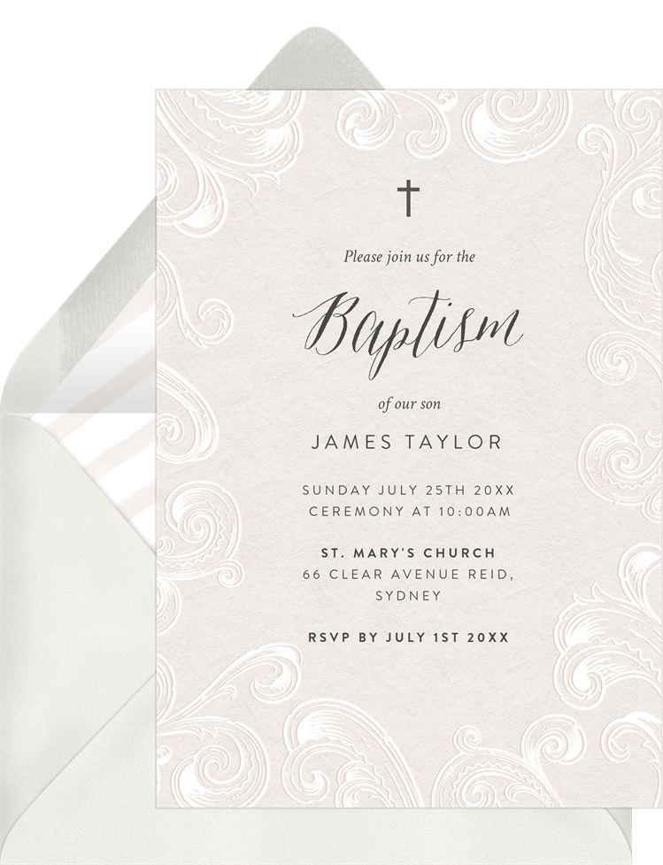 invitations feather flourish pink baptism Designs