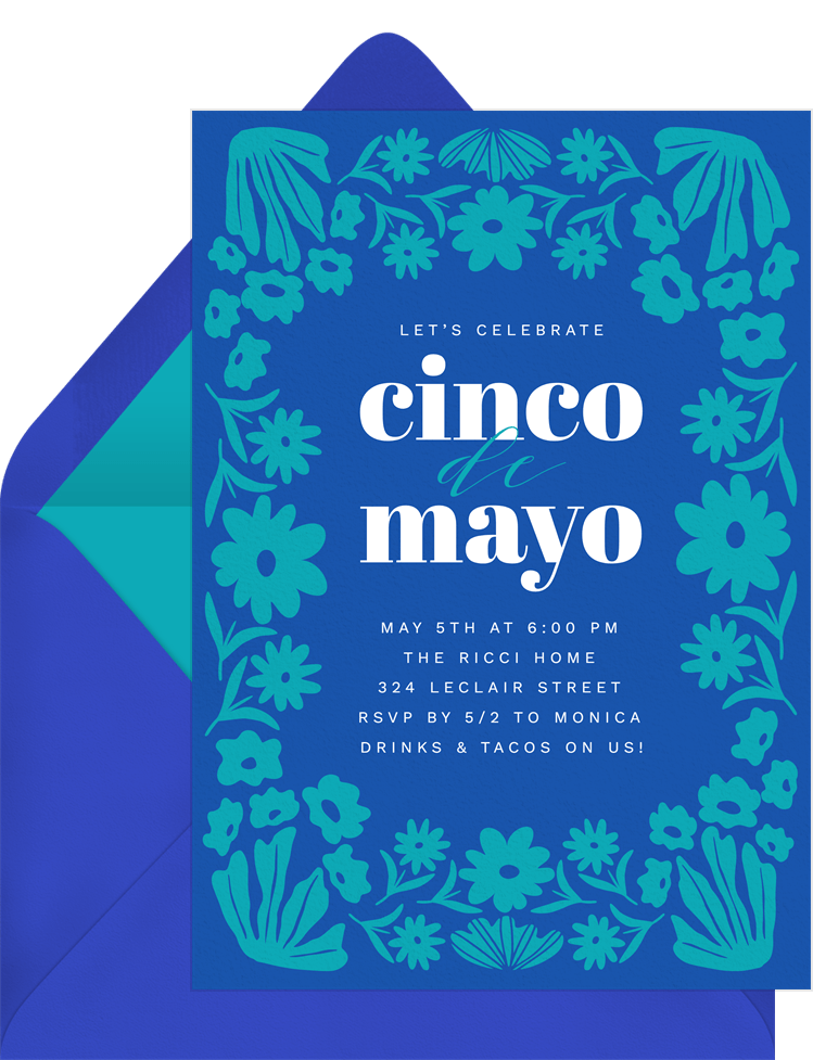 invitations festive florals blue cinco de mayo Designs