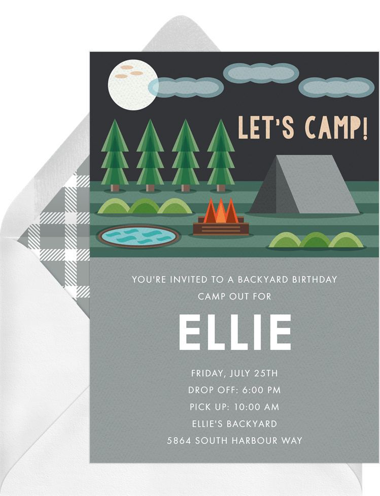invitations fireside camp grey kids birthday Designs