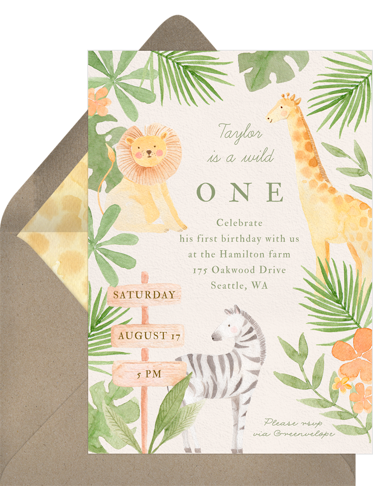 invitations first safari green kids birthday Designs
