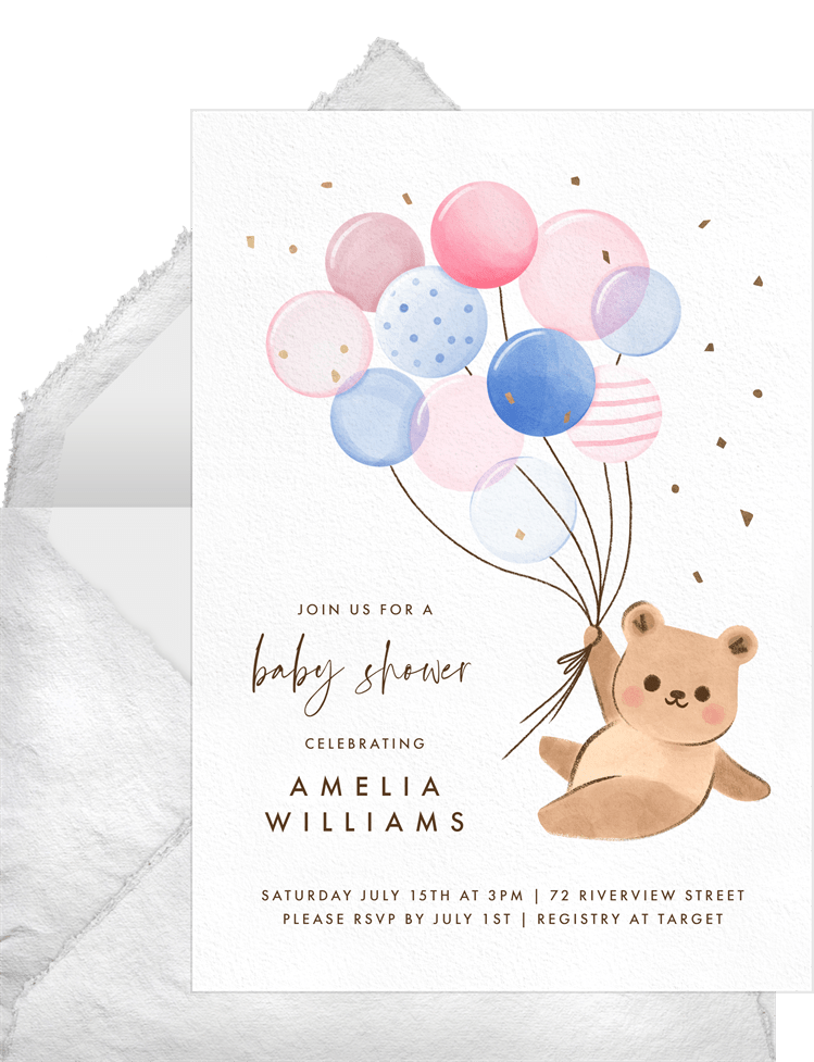 invitations floating bear white baby shower Designs