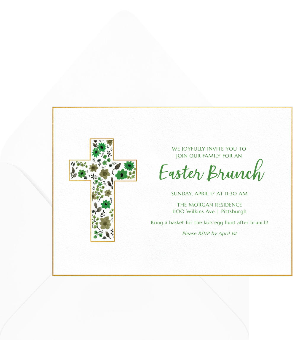 invitations floral cross green easter Designs