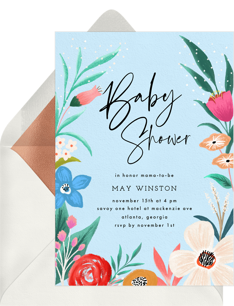 invitations flowering grove blue baby shower Designs