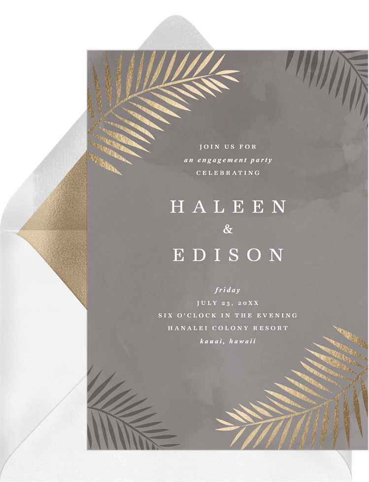 invitations foil palm leaves grey party Designs