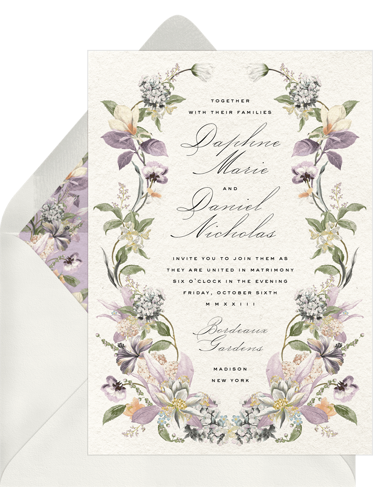 invitations forever florals purple wedding Designs