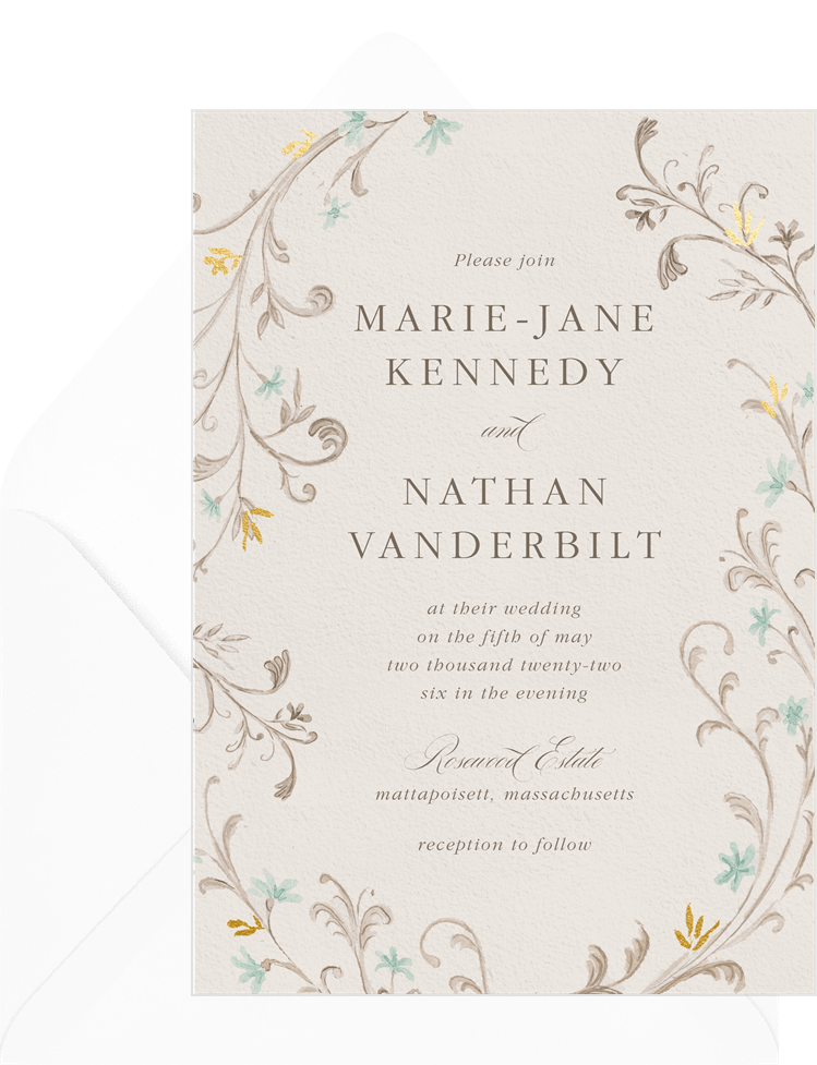 invitations framed romantic vines creme wedding Designs