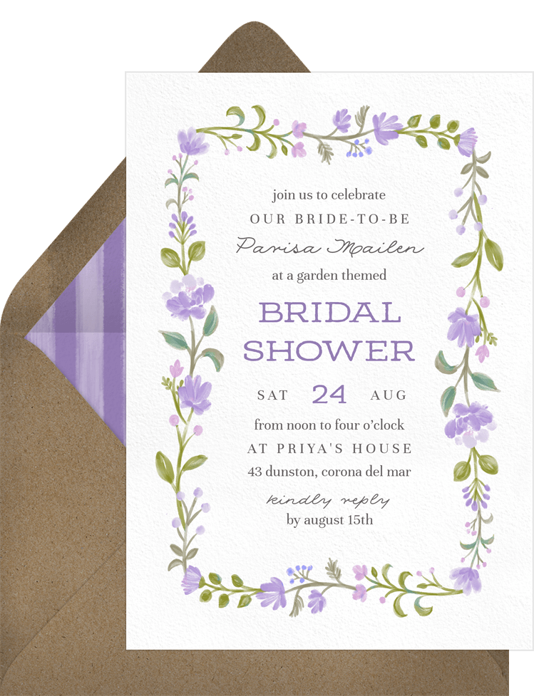 invitations friendly blooms purple bridal shower Designs