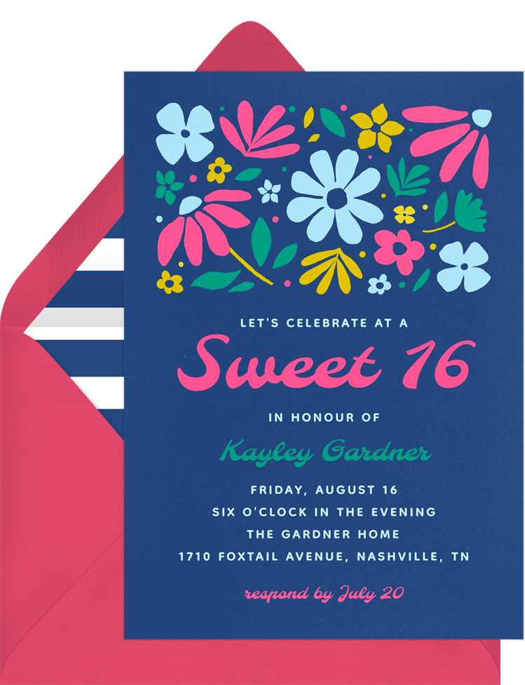 invitations funky florals blue sweet 16 Designs