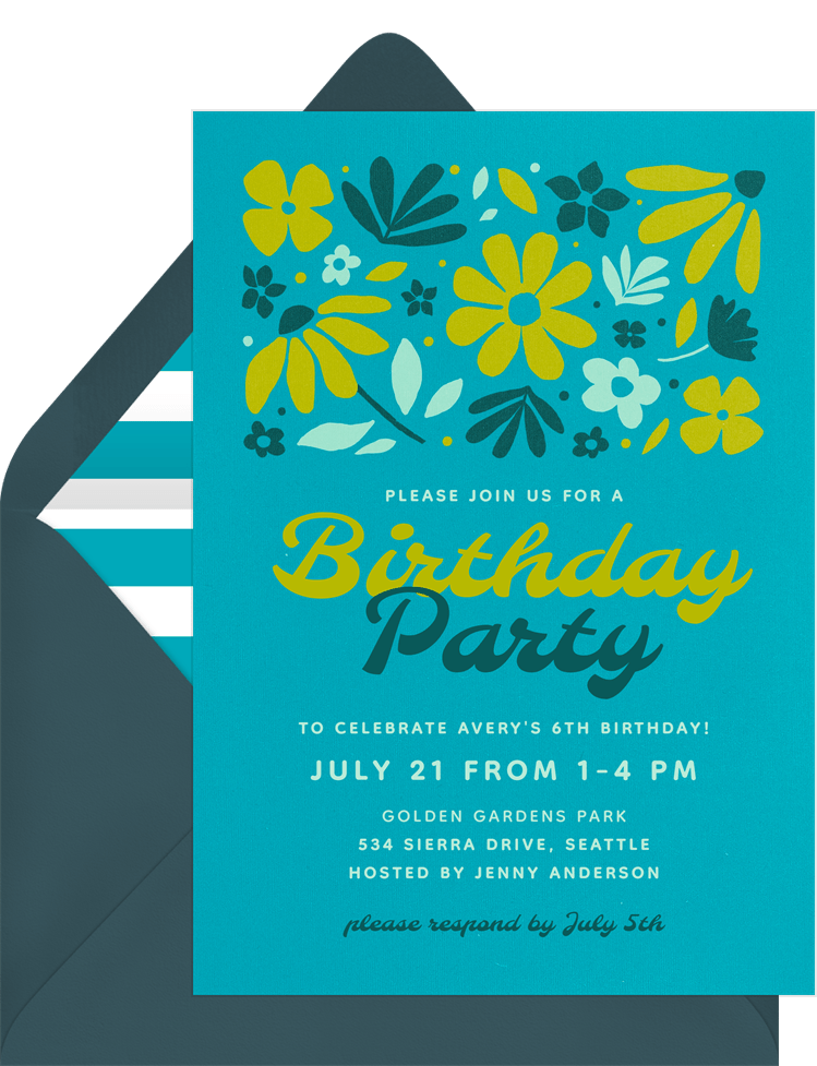 invitations funky florals green kids birthday Designs