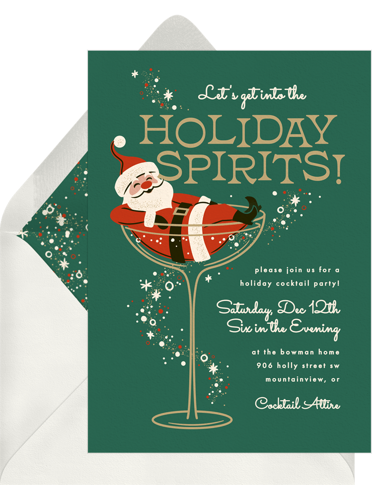 invitations getting into the spirits green holiday party Designs