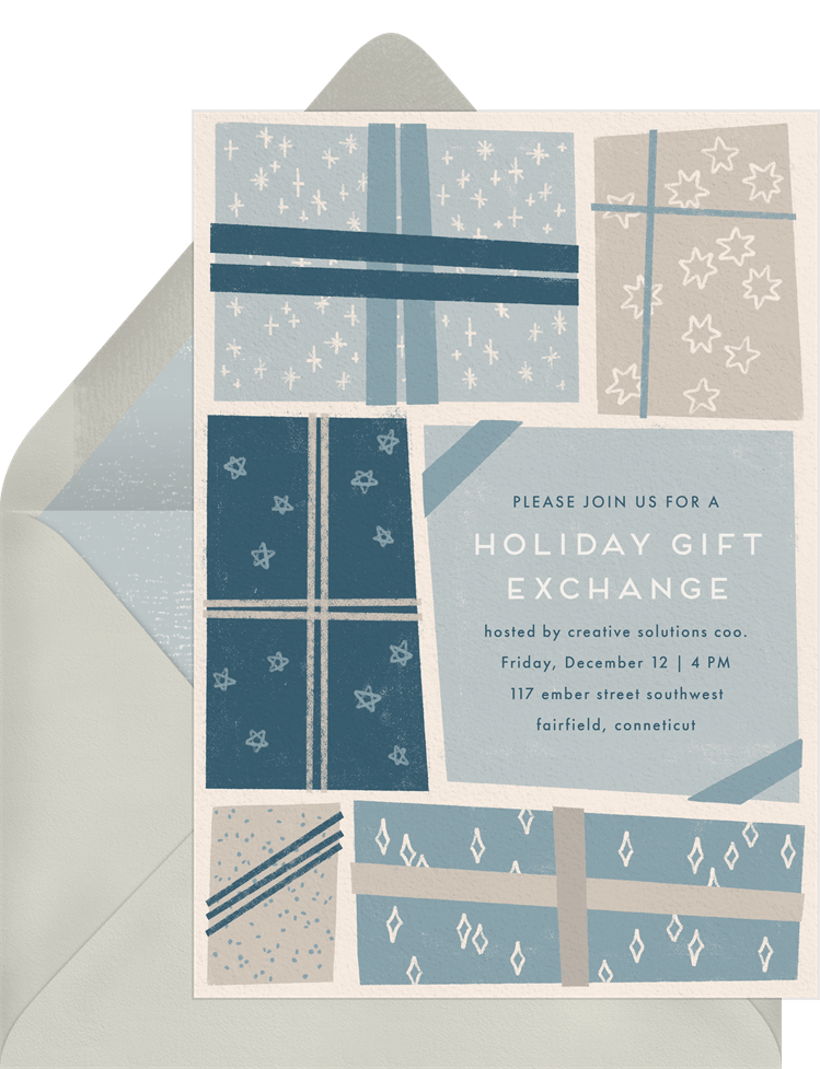 invitations gift box whimsy blue holiday party Designs