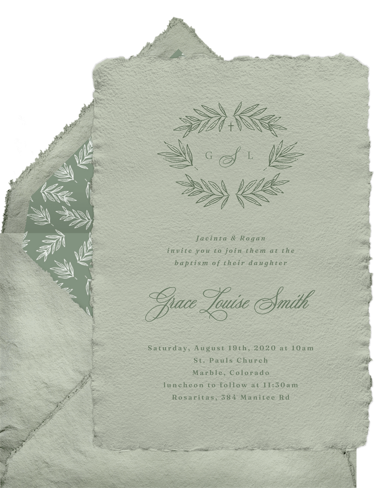 invitations gilded laurels green baptism Designs