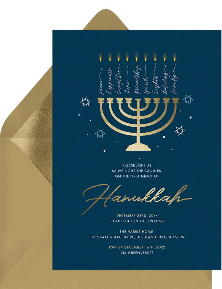 Gilded Menorah Invitation