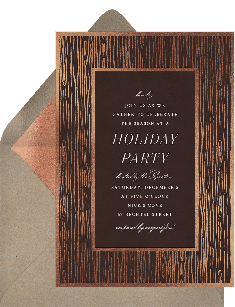 invitations gilded wood grain brown holiday party Designs