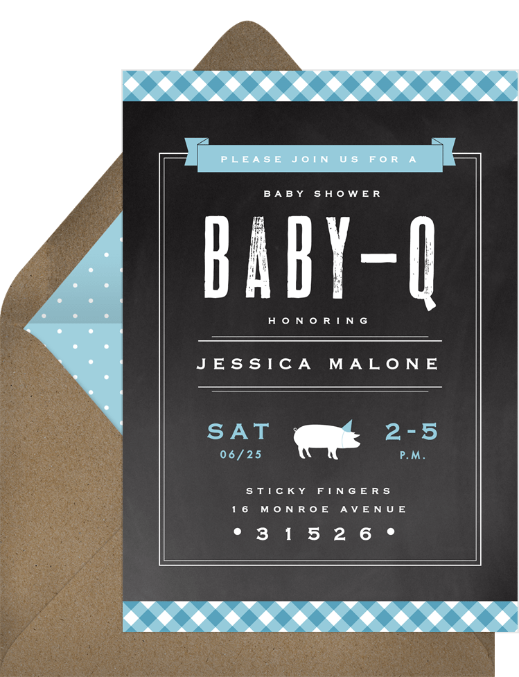 invitations gingham bbq blue baby shower Designs
