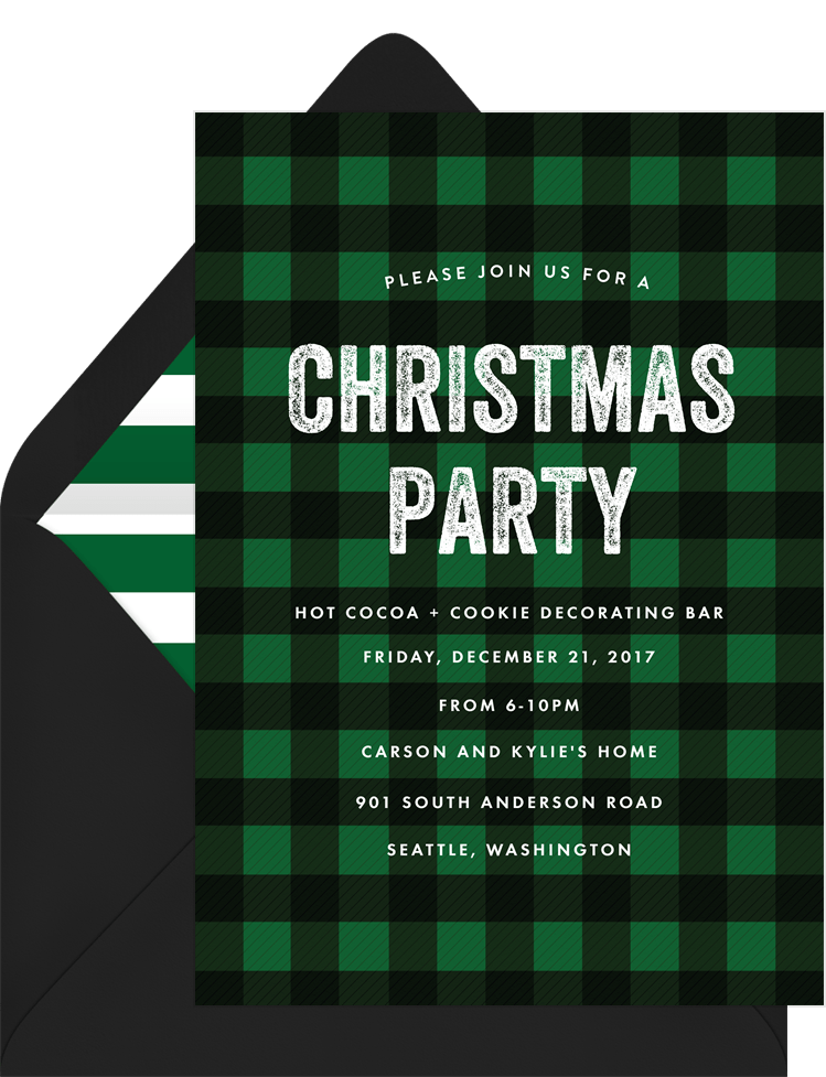 invitations gingham christmas green christmas party Designs